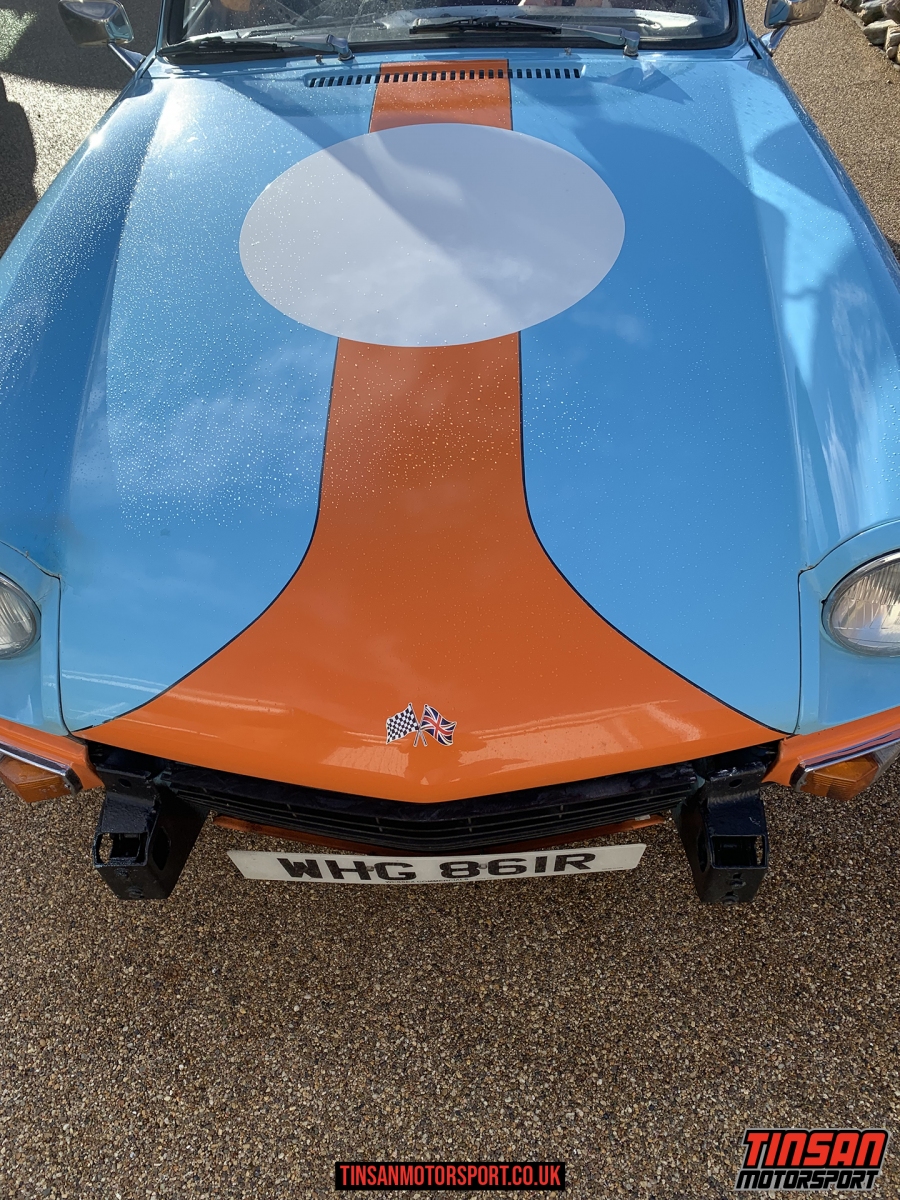 Photos of the new addition to our fleet, a 1977 Triumph Spitfire 1500 in Gulf racing colours. We have entered it into the Classic Marques Speed Challenge